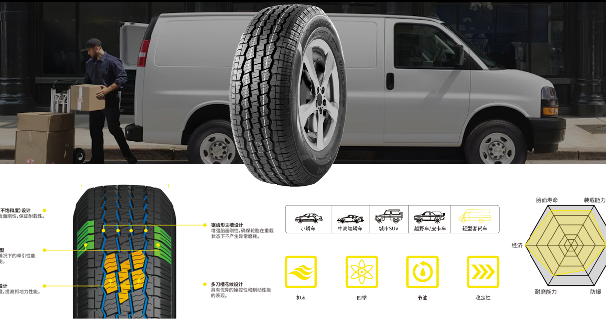 Adopting high-quality rubber materials and advanced tread formula, our tires feature strong abrasion resistance and extended service life, effectively reducing replacement costs.