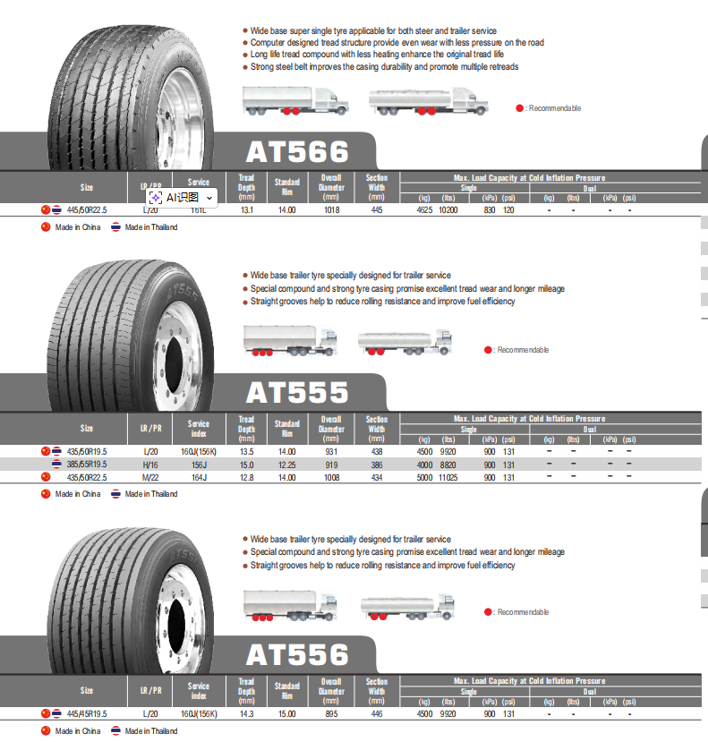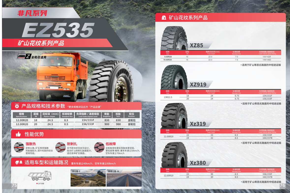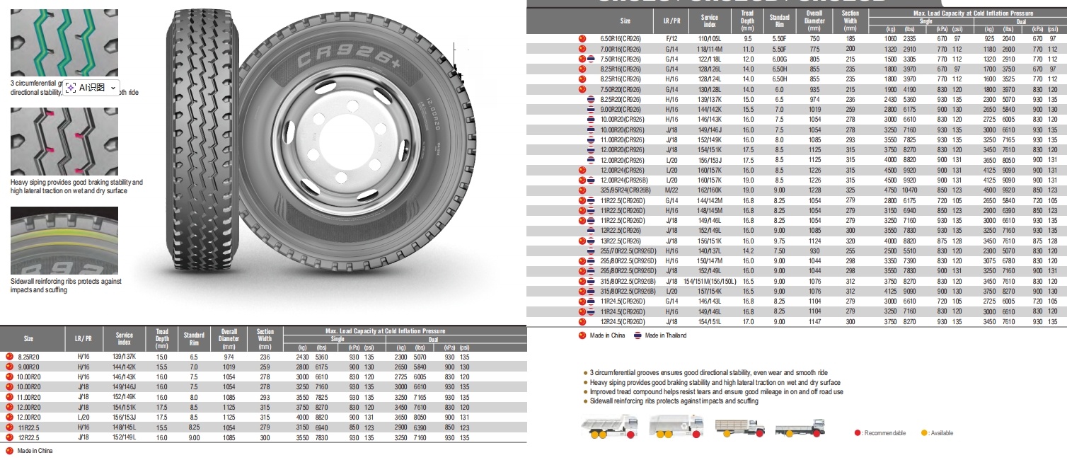 Reinforced carcass and sturdy sidewall structure provide outstanding load-bearing performance, suitable for trucks, engineering vehicles, agricultural machinery and heavy-duty transportation.