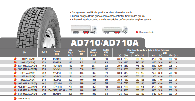 Optimized tread pattern design ensures strong grip on dry and wet roads, improving braking performance and driving stability in various working conditions.